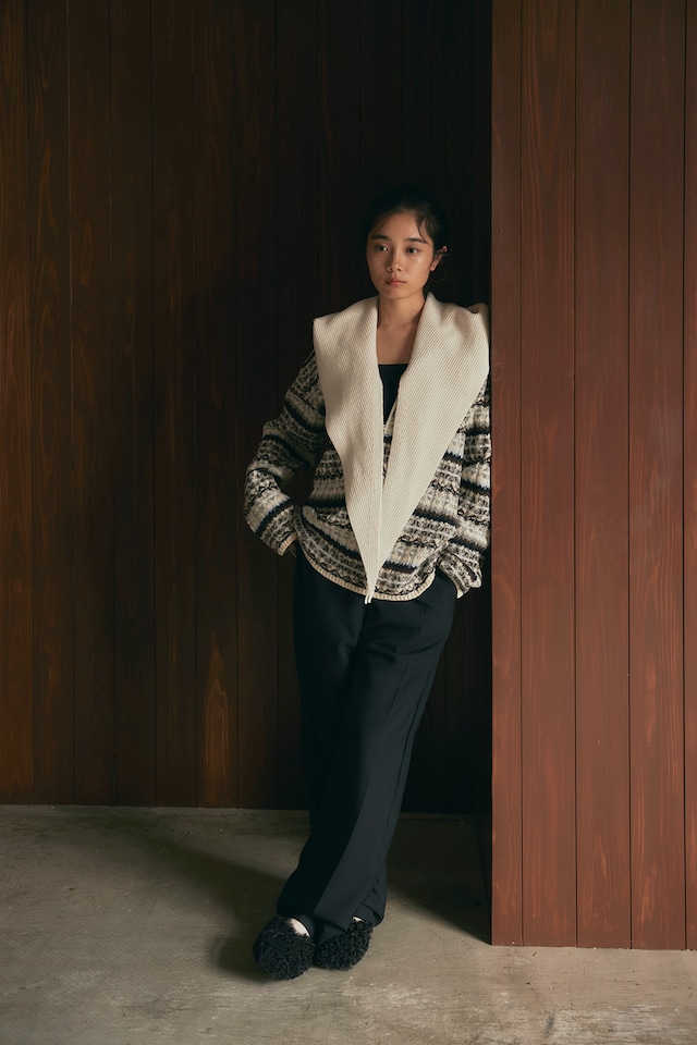 Rib jacquard zip top IVORY