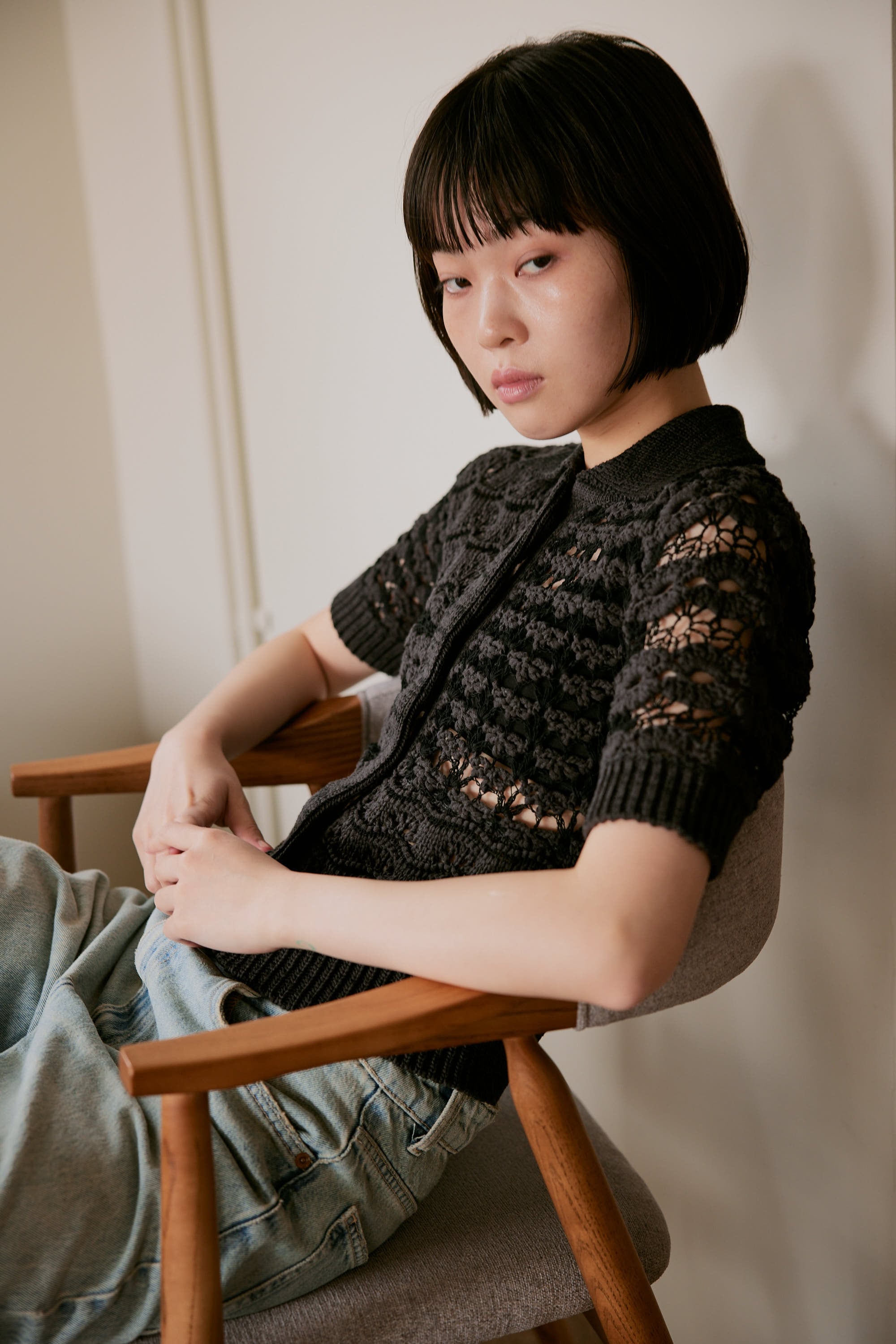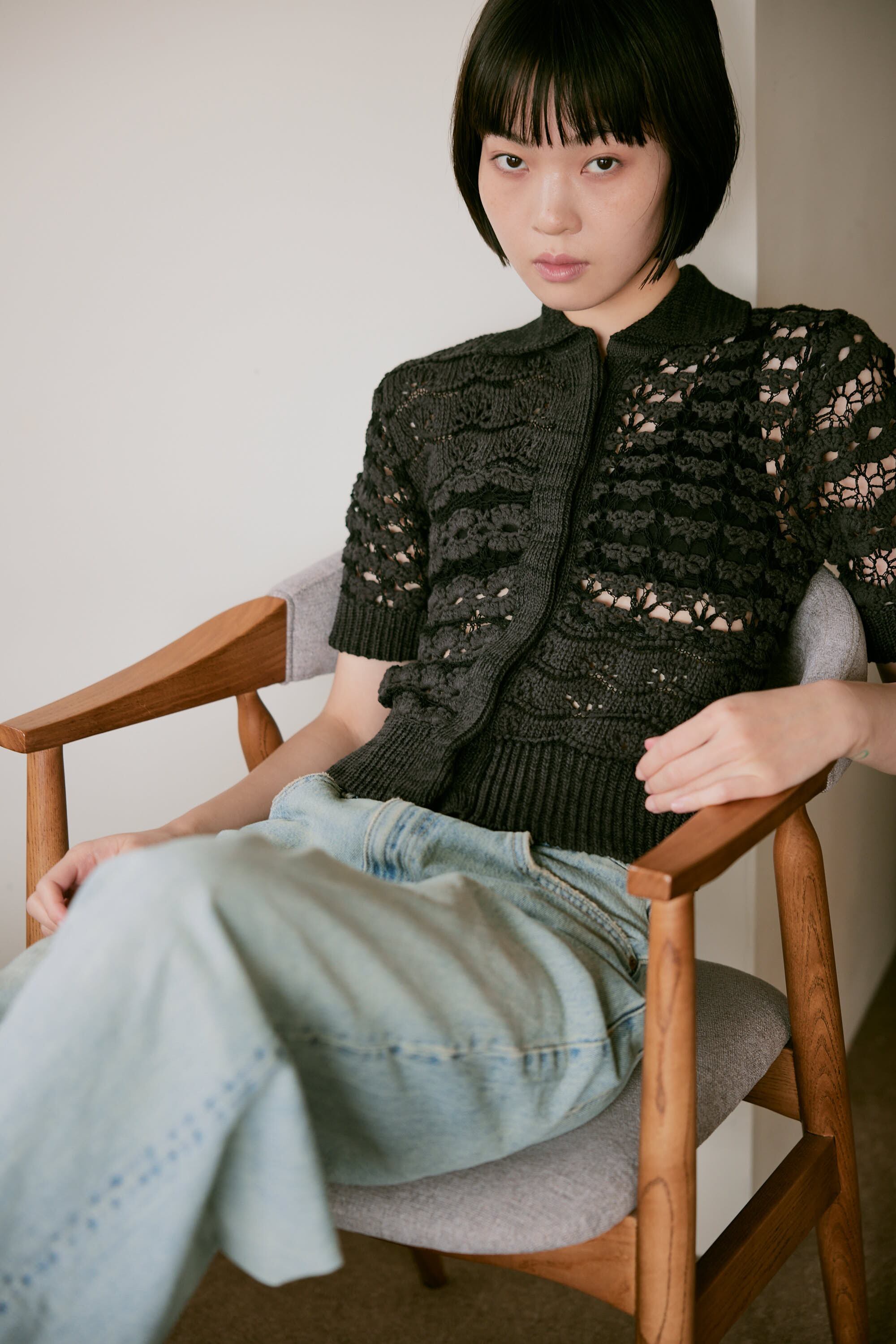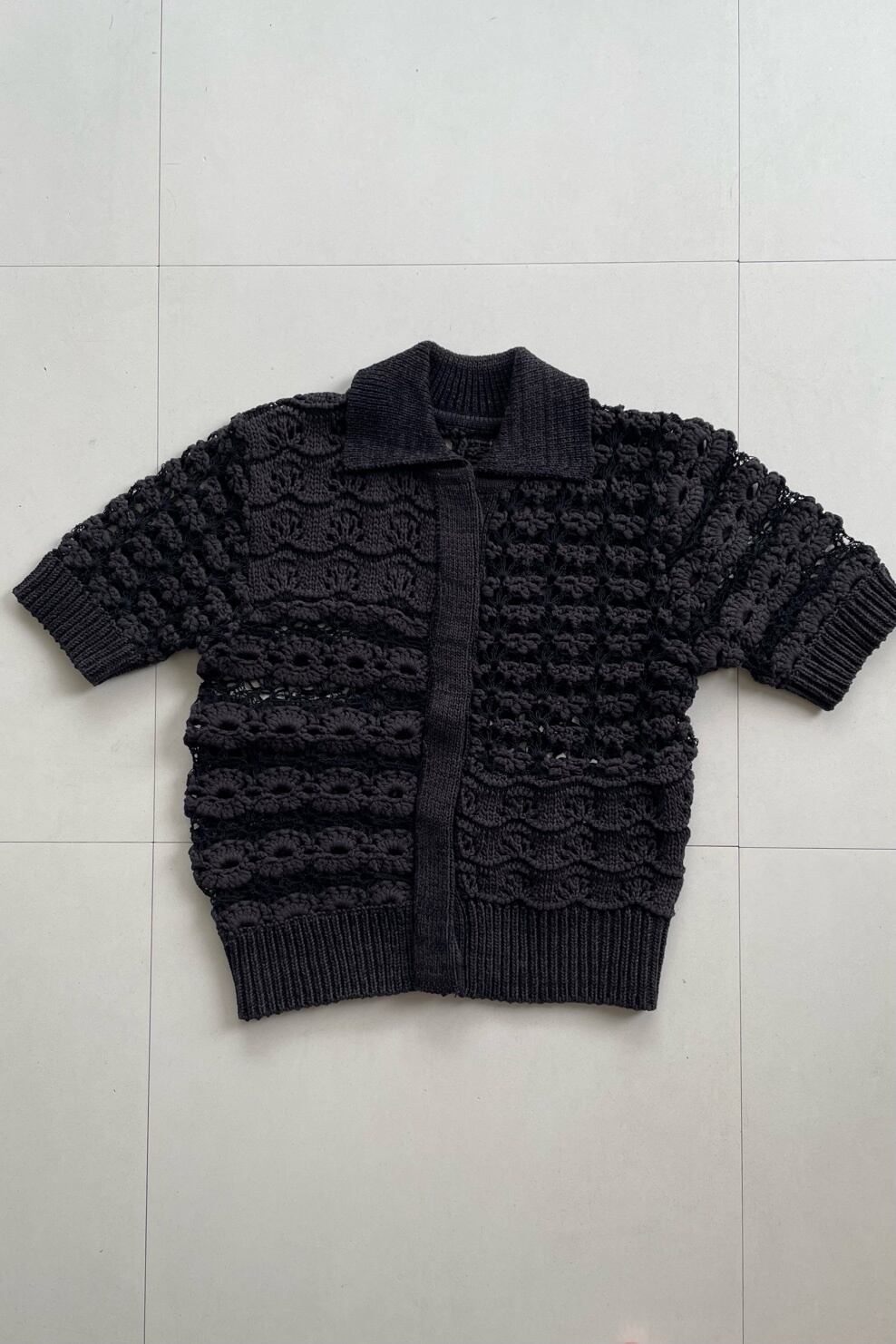 Hand crochet short-sleeve shirt D.GRAY