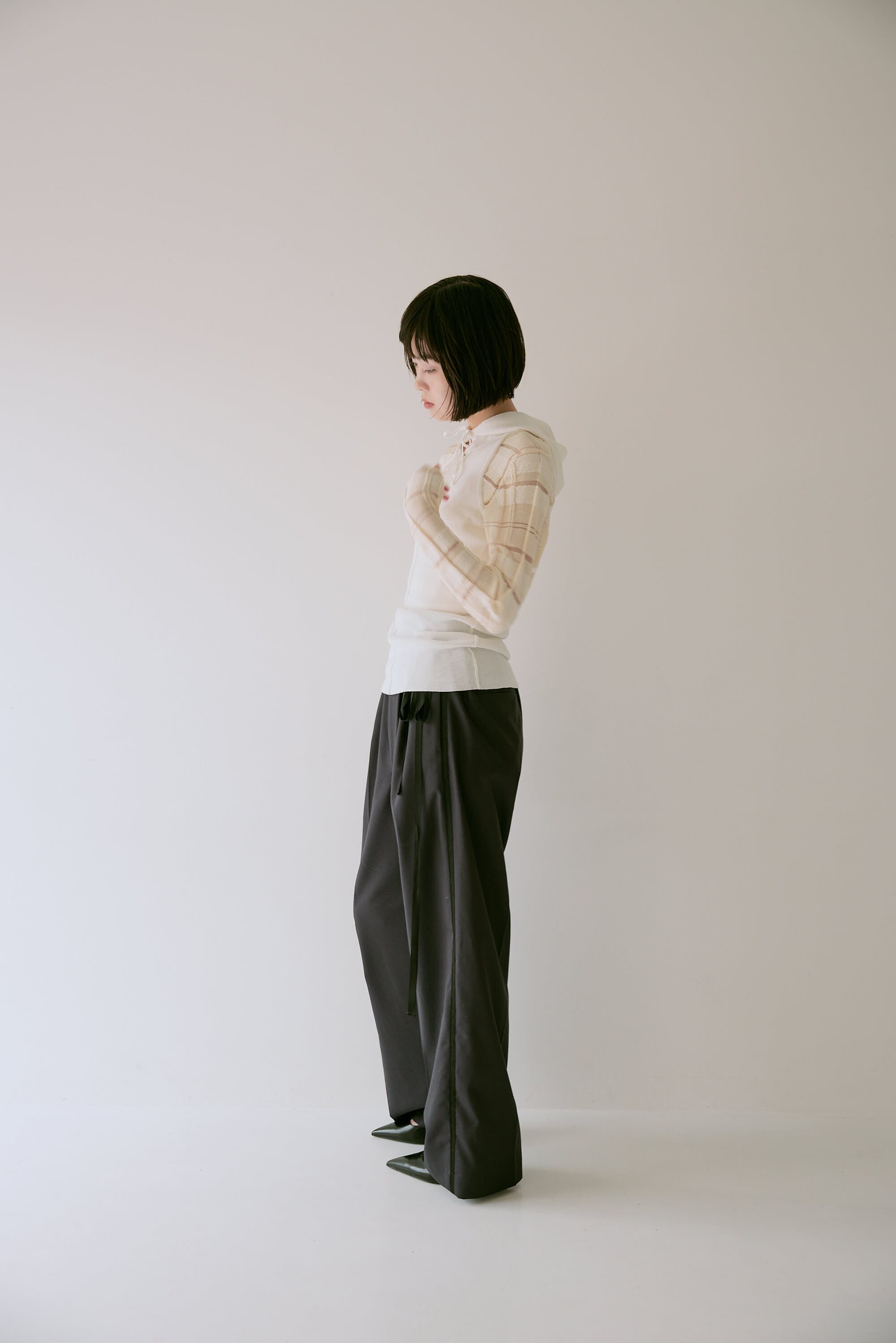60/2のシルケットコットンを使用したハイゲージのフードタンクトップです。コンパクトなサイズ感のアメリカンスリーブタンクにフードが付いたアイテム。ロンTに重ねたり、キャミソールのインナーに使ったり、いつものスタイリングが新鮮になるアイテムです。リボンの留め方でも雰囲気が異なり、様々なスタイリングが楽しめます。